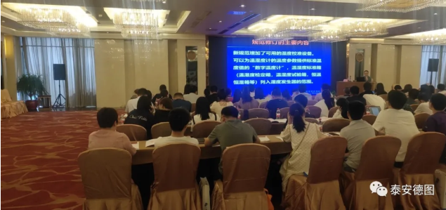 泰安德圖作為溫度、濕度計量儀器的專業制造商,以廠商代表的身份受邀參與了此次會議。參會期間與各計量同行共同探討、深入交流學習,同時作為宣講嘉賓為廣大計量同行展示了應對新規程的先進設備,為新規程的順利實施貢獻自己的責任與擔當。