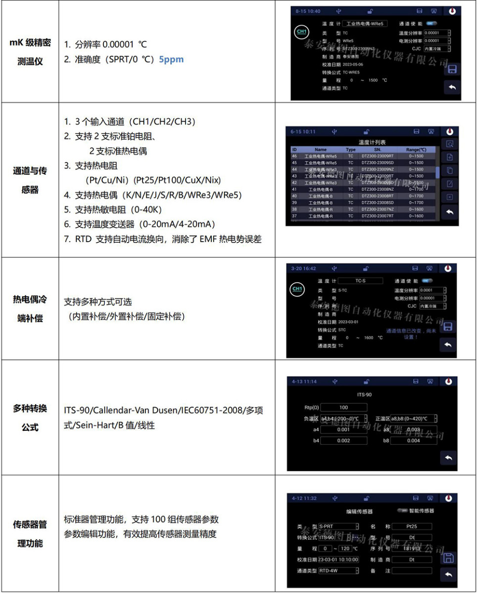 mK 高精度測溫儀可測量熱電阻、熱電偶、熱敏電阻、溫度變送器、濕度傳感器、直流電流和直流電阻以及直流電壓信號。支持ITS-90溫標(biāo)和IEC60751標(biāo)準(zhǔn),內(nèi)置德圖熱工計(jì)算器,支持傳感器參數(shù)管理和智能傳感器管理功能,在電力、石化、計(jì)量、冶金、生物、制藥、科研工作中有著廣泛用途,是溫度計(jì)量校準(zhǔn)領(lǐng)域理想選擇。
